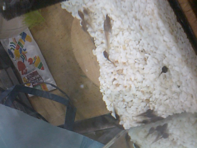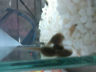 おたまじゃくしは底の方で流され無いように石をくわえ込み、しがみ付いてるようにも見えます諟流れの澱む水槽の角にも貯まってます